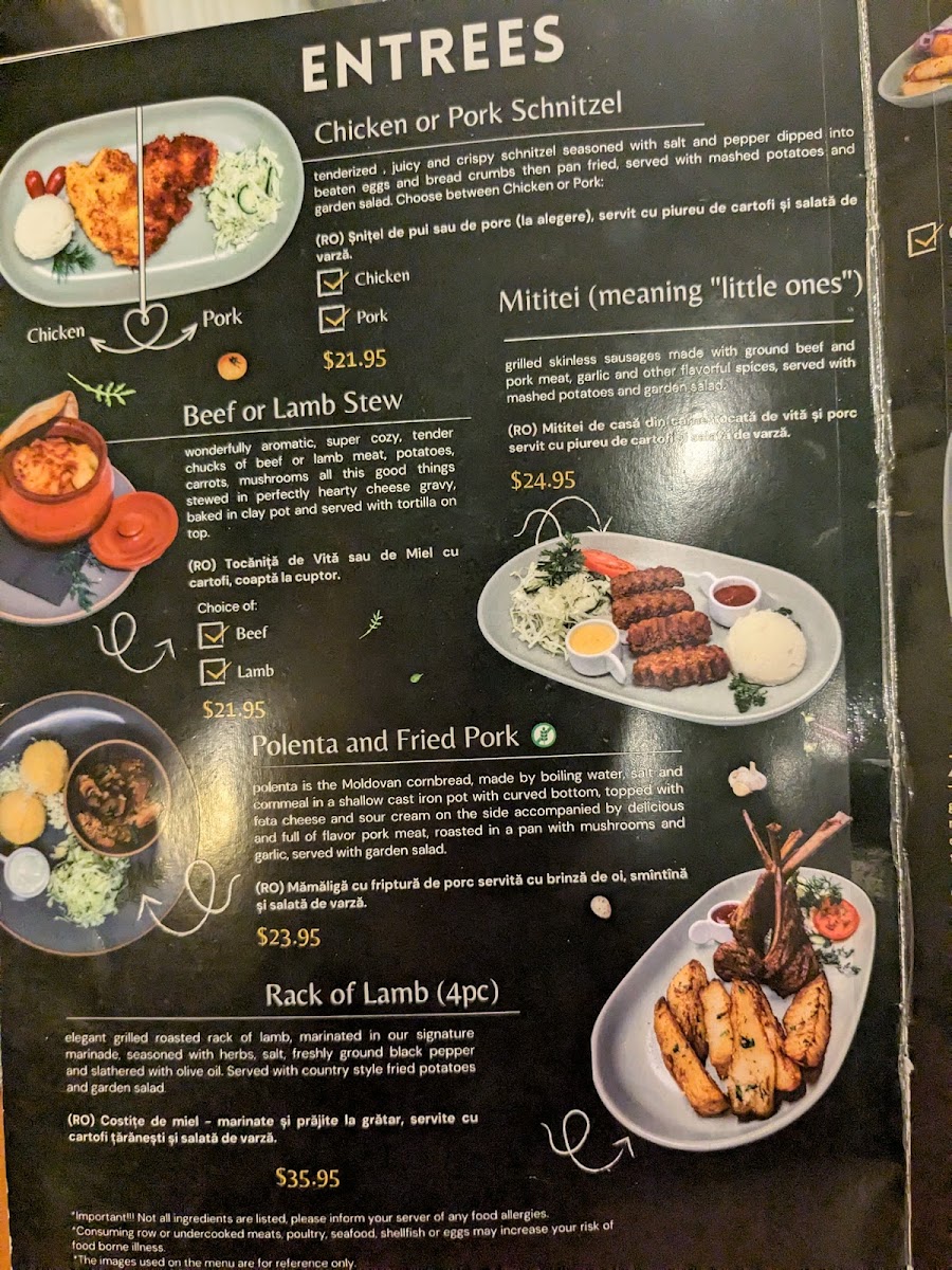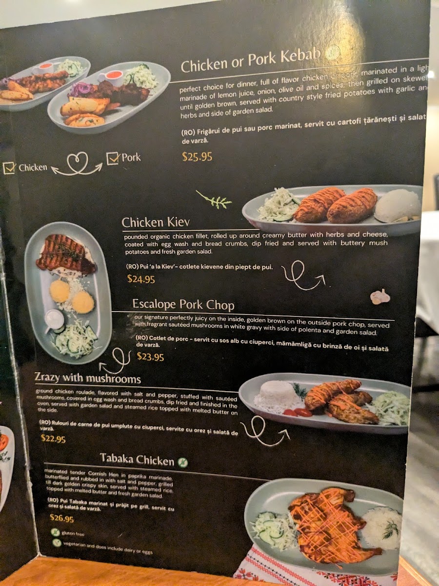 tenderized , juicy and crispy schnitzel seasoned with salt and pepper dipped into beaten eggs and bread crumbs then pan fried, served with mashed potatoes and garden salad. Choose between Chicken or Pork.